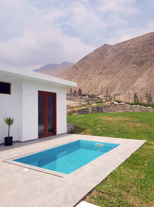 Nuestra segunda experiencia en el Condominio Ensueño permitió reforzar las ideas de visuales hacia el paisaje. La Vivienda se proyectó para una familia de una pareja con dos niñas pequeñas, el emplazamiento priorizó las visuales hacia el área de recreación y hacia el paisaje de montañas, en cuanto a la distribución se propuso que todos los ambientes del área social y dormitorios puedan salir directamente a la terraza, piscina y zona de recreación.