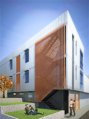 La expresión arquitectónica propone un elemento en concreto en combinación con elementos de madera a modo de celosías verticales que se contraponen a la nueva andenería del cerro.